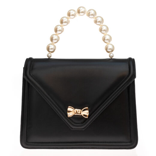 “Little Ladies” Black Leather Pearls Bag