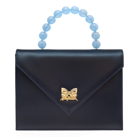 “Brigitte Pearl” Blue Navy Leather Bag