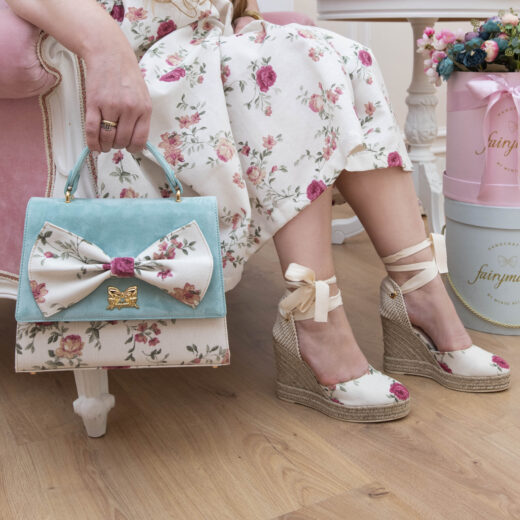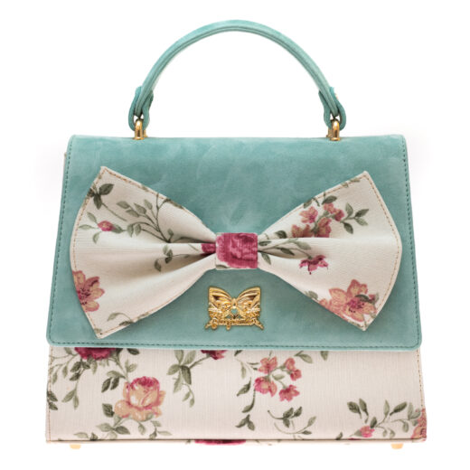 “Brigitte Pearl” Baby Blue Floral Satin Bag