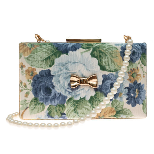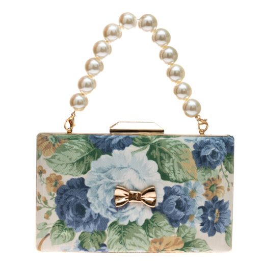 “Fairy Clutch” Blue Floral Pearl Bag