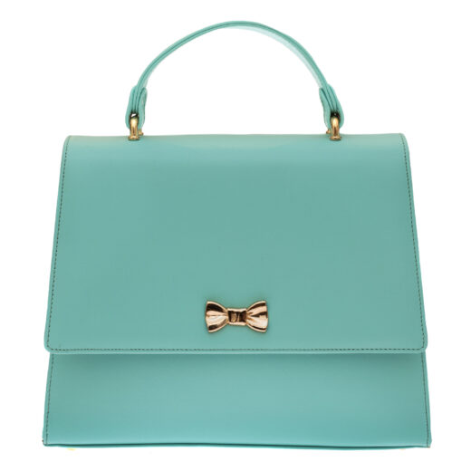“Amelie Bow” Aqua Leather Bag