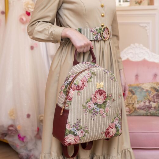 “Parisian Floral Beige” Backpack Bag