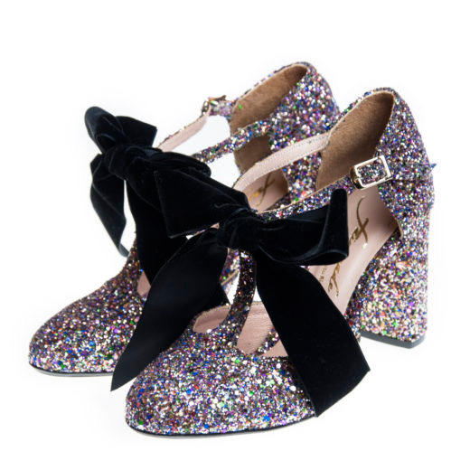 “La Parisienne” Rose Gold Glitter Bow Heels