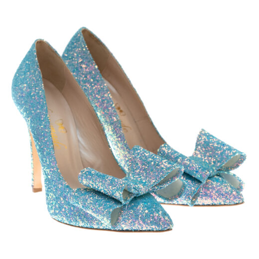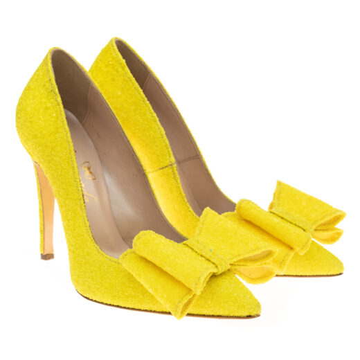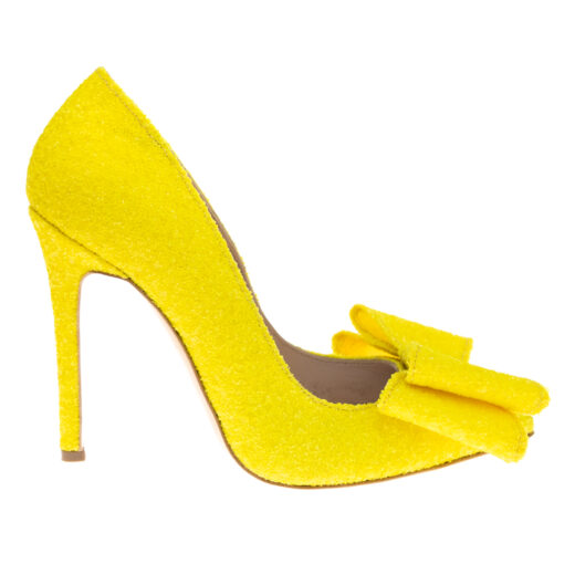 “Brigitte Bow” Yellow Luminous Glitter Heels