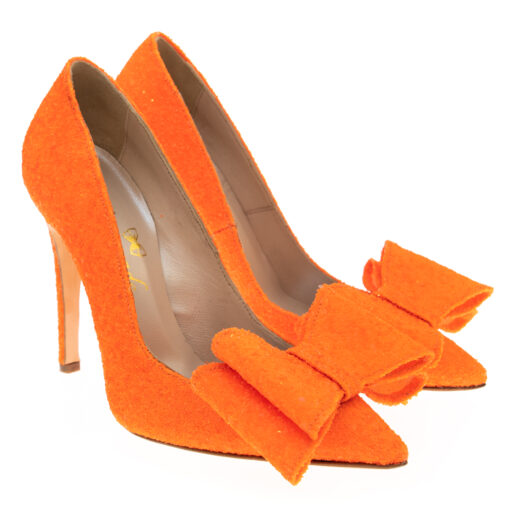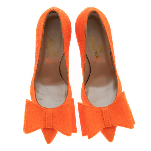 “Brigitte Bow” Orange Luminous Glitter Heels